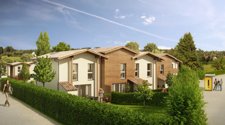 La parcelle est nervurée d’est en ouest, occasionnant des ouvertures visuelles sur les berges du parc public de l’étang. Une écriture qui cherche à mêler l’échelle pavillonnaire et celle d’immeuble collectif. Le projet fait le lien entre habitat individuel, bâtis…